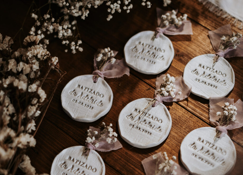 Aqui podem encontrar desde mini garrafinhas de licor ou azeite aromático, até peças em barro personalizadas, porta-chaves, peças em madeira gravadas, velas personalizadas e muito mais. Cada lembrança é criada com intenção, carinho e atenção ao detalhe, para que o vosso dia continue, mesmo depois.