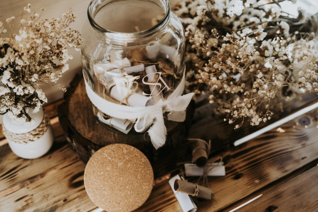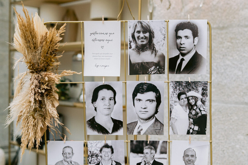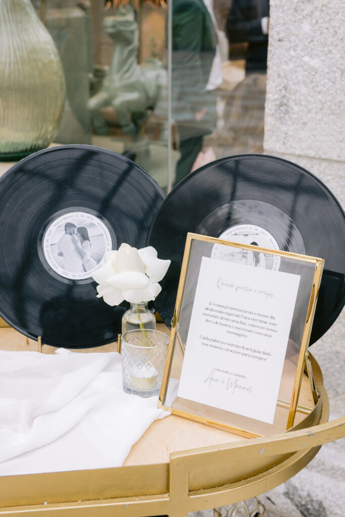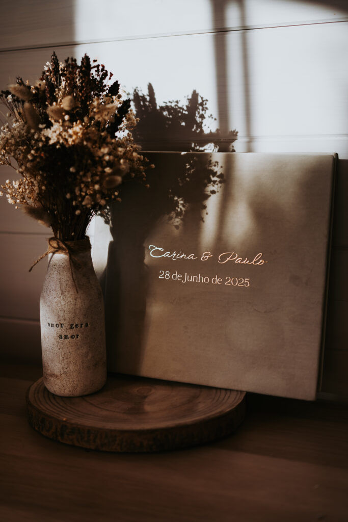 A mesa de honra é o espaço dedicado às palavras, às memórias e às emoções que os vossos convidados querem deixar-vos. É um cantinho pensado para mais tarde recordar — para guardar mensagens, assinaturas, fotografias e sentimentos.