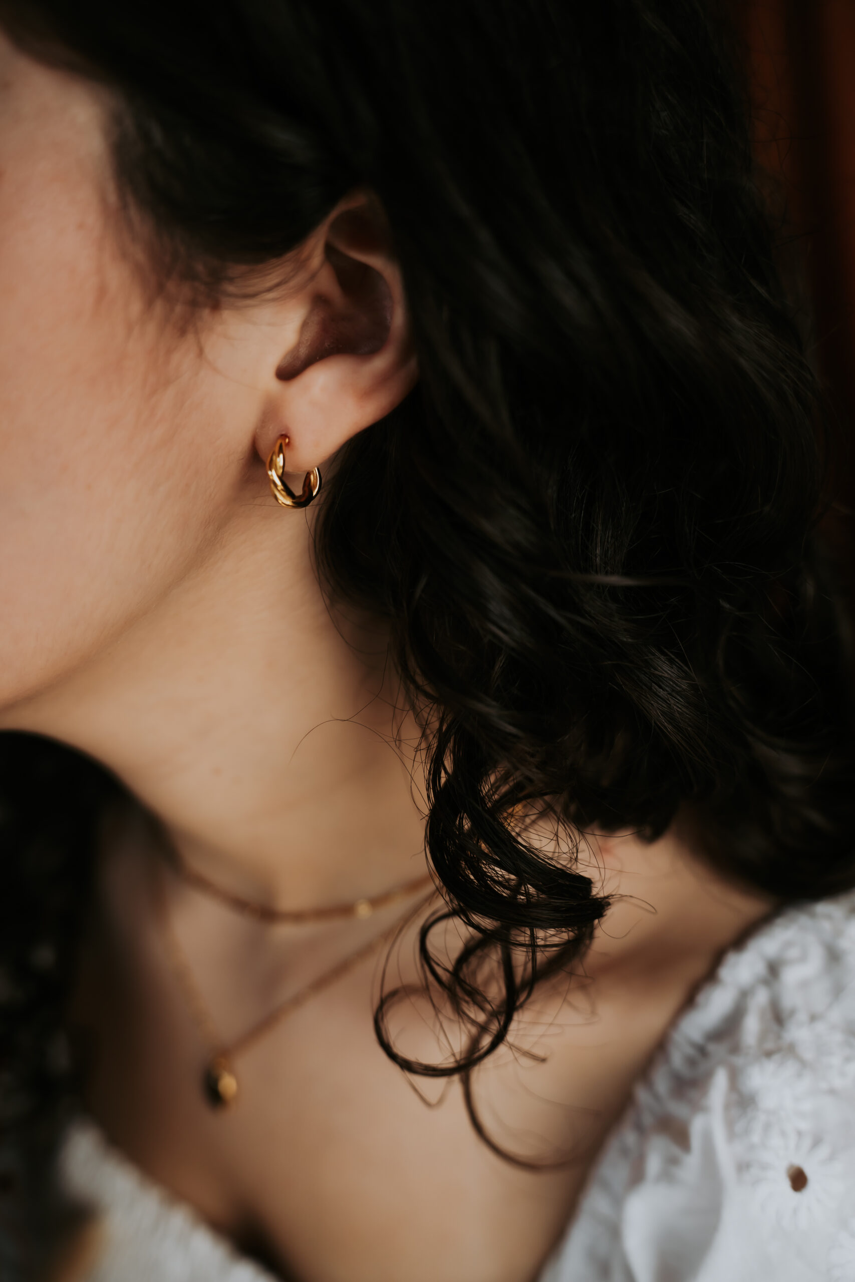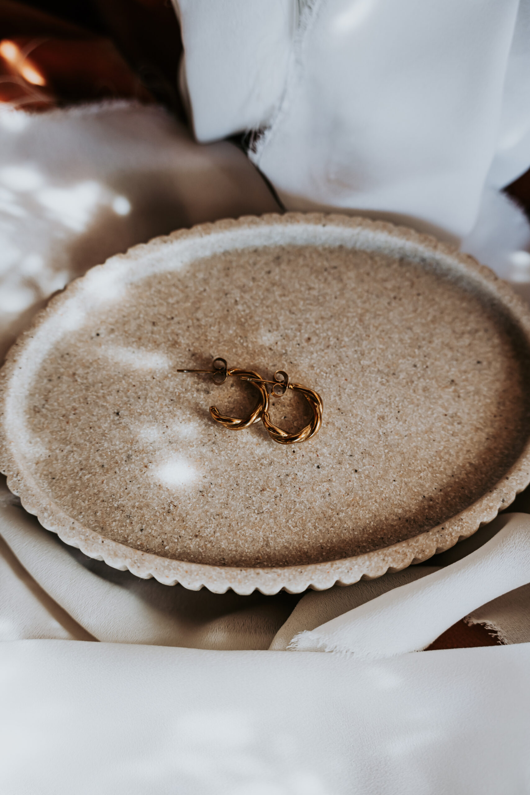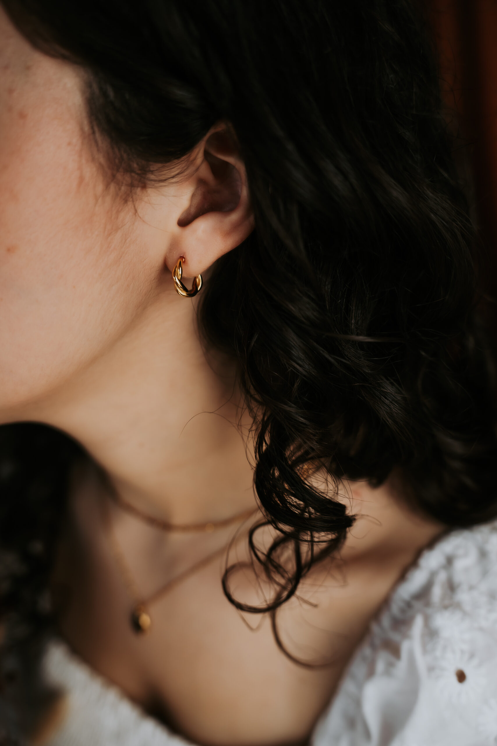 Argolas com efeito twisted, combinando movimento subtil e elegância intemporal.